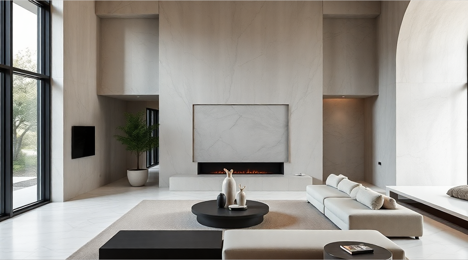 Traditional lime-based plasters creating depth and luminosity with centuries-old techniques adapted for modern spaces.