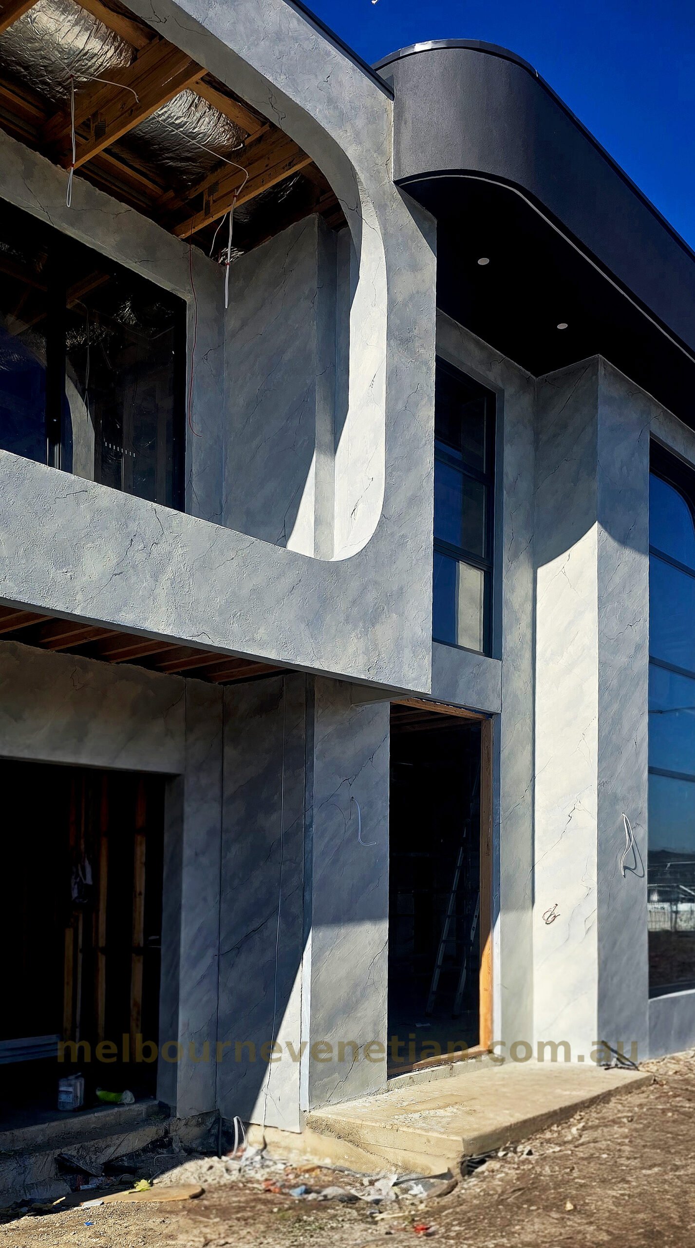 Statement Venetian plaster exterior with dramatic depth, and contemporary elegance.